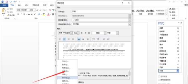 2. 修改“页眉”样式