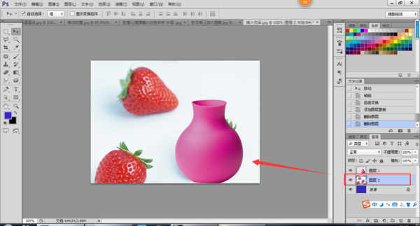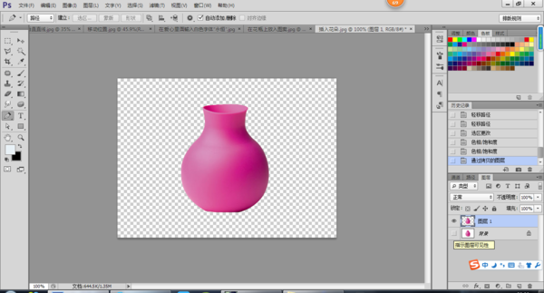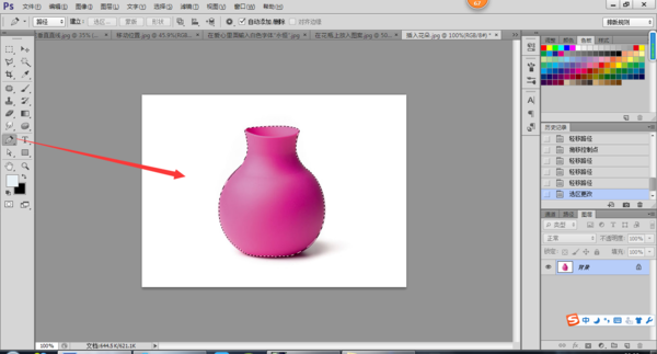 1、在PS软件中置入普通照片,用魔术棒/钢笔/通道将照片上的花瓶抠出;