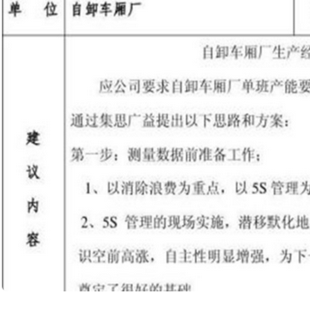 5、加大合理化建议活动宣传、推广的力度,发挥员工主观能动性,只有员工的自发行动,合理化建议活动才能开展的有声有色,掷地有声。