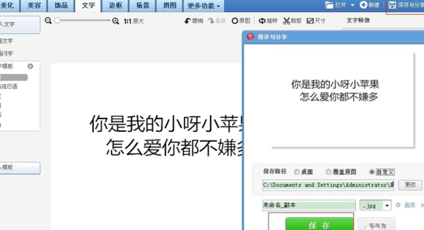 文字设置好了之后,点击”保存与分享“,这样一张文字图片就制作好了。