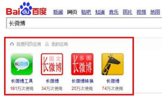 1、百度“长微博”或者“长微博工具”可搜索到百度推荐的相关应用,选择任一应用打开。