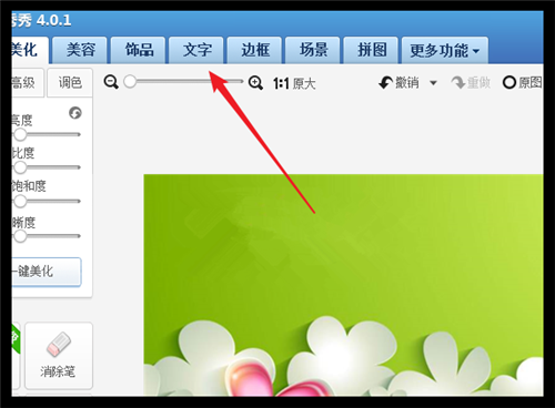 3、如下图中的红色箭头所指,使用消除笔把文字消除掉。