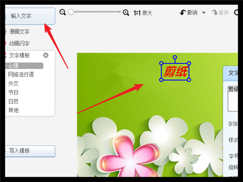 5、点击左侧的“输入文字”。在文字编辑对话框内输入文字即可。