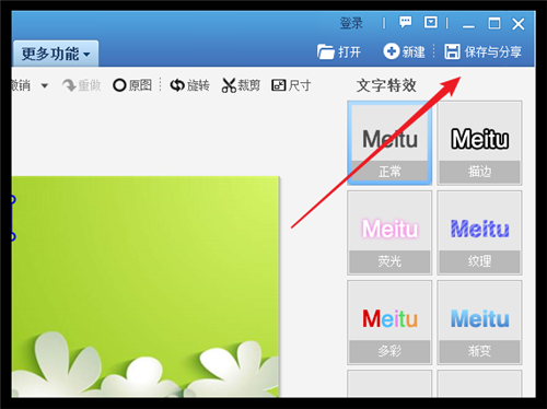 6、编辑完成后点击右上角的“保存与分享”,把编辑好的图片保存到电脑。
