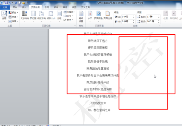 4、选择完成之后可以看到文档中出现了水印,如图所示: