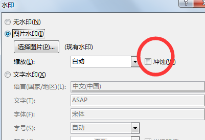 6、在弹出的水印对话框中可以看到需要设置的选项