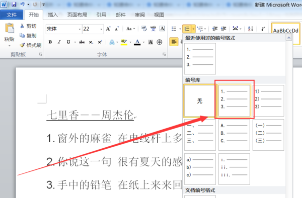 3、在编号下拉选择菜单中选择需要的编号样式即可。