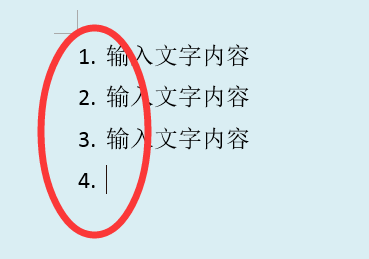 4、返回主文档,发现选中的段落已自动加上编号,后续按“ENTER”换行也可以自动编号。