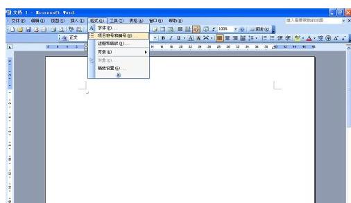 点击菜单栏的“格式”按钮,在下拉列表选择“项目符号和编号”如图所示