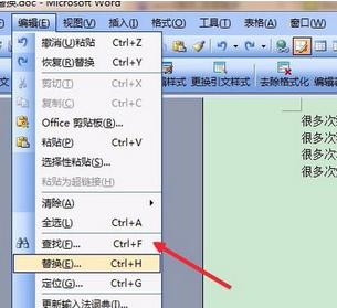 另一种方法就是选中左上角的“开始”,然后执行“编辑-替换”。Word2003版本直接点左上角的“编辑-查找-替换”。