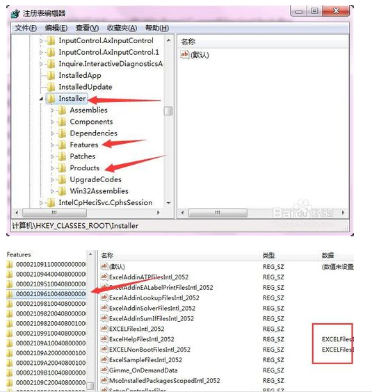 删除(在注册表对应项右边可看到是否与office名称):
