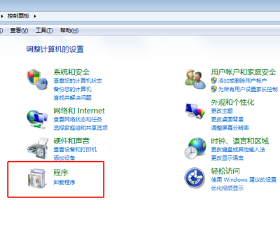1、首先我们打开控制面板,点击“程序”选项。