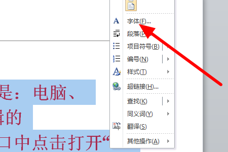 2、然后我们右键单击字体选择打开“字体”。