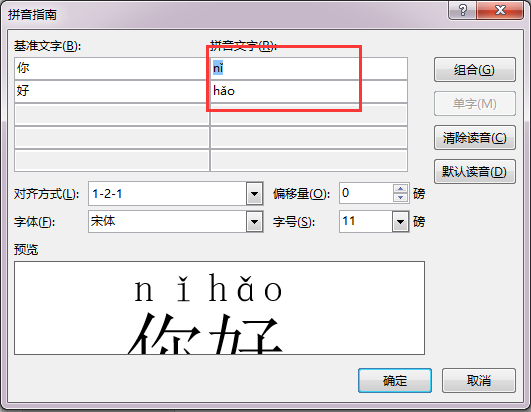 在出现的拼音指南对话框中直接点击确定。