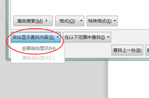5、选择“突出显示查找内容”。