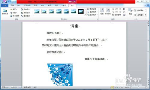 用Word制作电子邀请函邮件详细步骤_百度经验 http://jingyan.baidu.com/article/73c3ce281bc5e4e50343d9d5.html