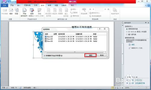 在弹出的【使用数据源】对话框中选择做好的EXCEL被邀请者名单,并在弹出的【选择表格】选项框中选择“邀请者名单”所在的Sheet表单,这里一般为Sheet1表单,确定。