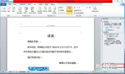 我们在制作请柬、邀请函的时候,因为大部分的字段相同,不同的只有邀请函编号、被邀请人的姓名、被邀请人的职位等少量的信息不同,我们可以利用office的邮件合并功能批量制作邀请函。