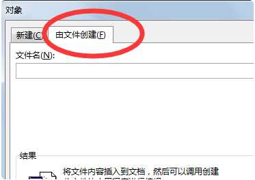 3、即可打开“对象”对话框,点击“有文件创建”选项。