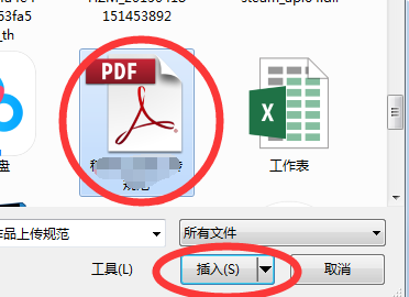 通过以下步骤只能插入PDF图标及文件名: