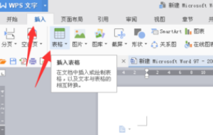 2、点击word内的菜单栏内的“插入”菜单--点击“表格”工具,弹出下拉菜单。