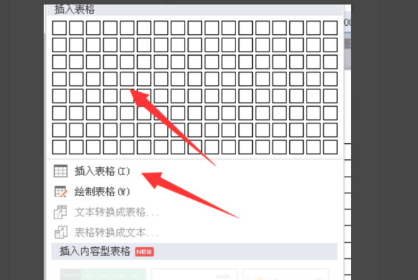 3、在下拉菜单内,拖动鼠标选定插入的表格,或者直接点击“插入表格”,插入表格。如图二完成表格插入。