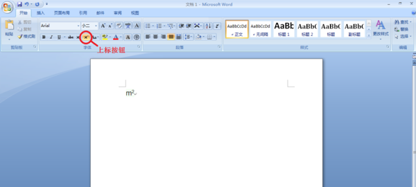 2.单击“开始”选项卡,在“字体”组,单击“上标”按钮。