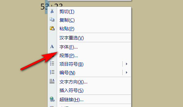 2.接着右键单击鼠标,在弹出的菜单栏里面选择字体。