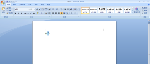1.在文档中输入“m2”,然后选中数字“2”。