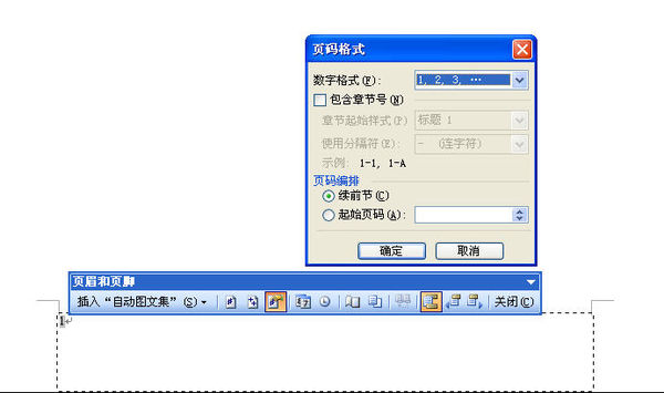 ②单击“插入页码”按钮,再单击“页码格式”按钮,打开“页码格式”对话框。