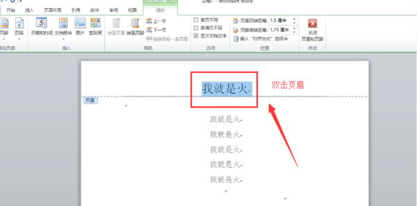 4、页眉没有复制到文档2中,这时要回到文档1中,双击页眉,在页眉的内容全选,按ctrl+C。