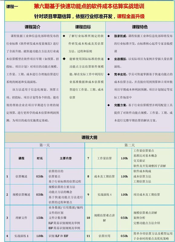国内有关于软件成本估算方面的专业培训吗?