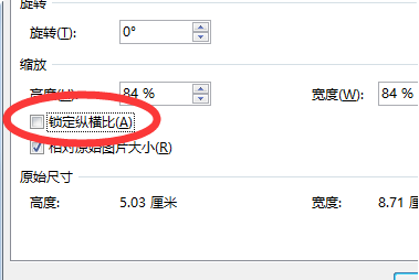 3、在打开的对话框中将“锁定纵横比”前面的勾选去除,点击确定。