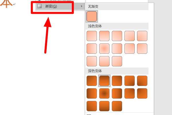 3、设置完颜色后,点击文本填充下面的“渐变”按钮,然后在展开的列表中选择渐变样式,这样文本就变成了渐变色: