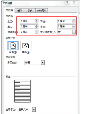 2、把页边距的参数都设置为0