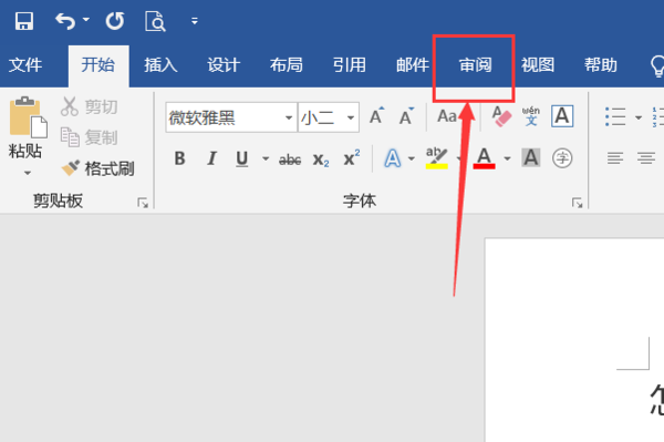 2、在上方的工具栏中点击审阅: