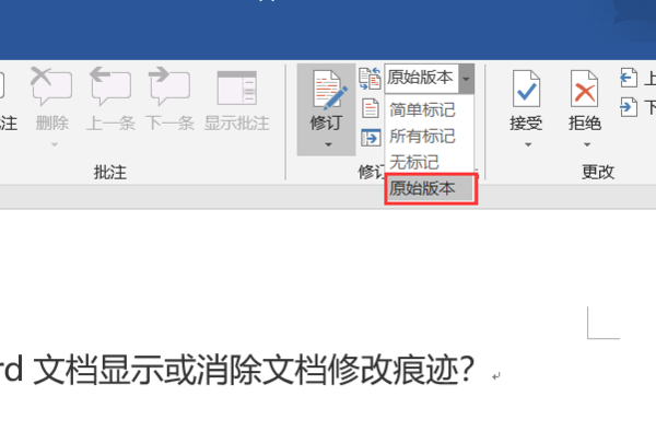 8、消除修改痕迹,点击修订旁的原始版本: