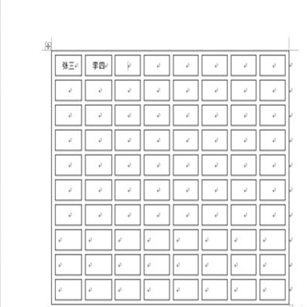 6、设置完成后点击确定,然后就可以看到很多分开的格子了,接下来填上姓名就制作完成座位表了。