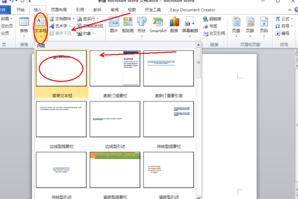 1、打开需要操作的WORD文档,点击插入选项卡中的“文本框”并选择文本框样式插入。