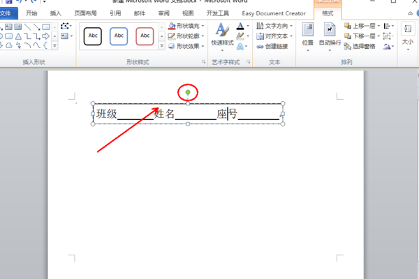 3、点击文本框上方小绿点逆时针旋转90度,并将文本框移动到页面纸张的左侧。