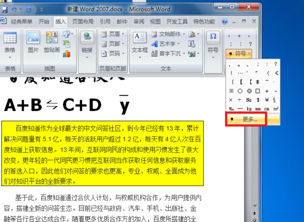 2、然后点击“符号”下拉菜单中的“更多”选项。