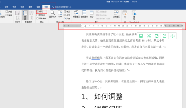 1、打开Word文档,可以看到Word文档上方有个标尺,如果没有显示,可以在【视图】菜单栏下找到【标尺】工具。