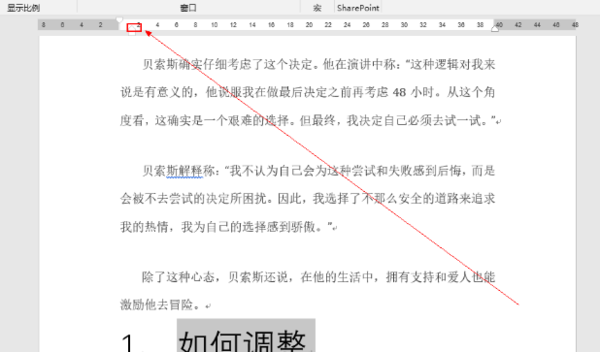 3、拖动下方标尺的三角图标,即可调整自动编号与文字的大小。