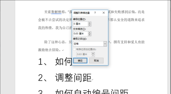 Word文档中如何修改编号与文字间的间距