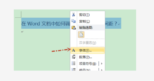 3、字符间的间距也是选中文本之后单击右键,然后选择【字体】