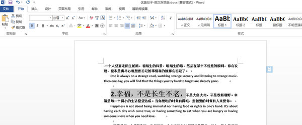 1、选中标题文本段落,点击开始选项中的“标题1”,将相关文本设置标题样式。