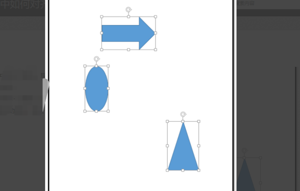 4、弹出下拉菜单,“对齐所选对象”这里已打上勾,那么,我们只需要按自己的预想,在相应的选项中点下即可。比如“左对齐”,文档中三个图形即相互之间左对齐,如第二张图所示。