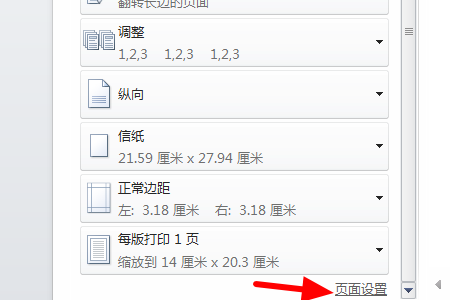 2、然后我们在弹出来的窗口中点击打开最底下的“页面设置”。