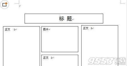 2、首先我们要确定排什么样的版式?想好后,我们先在WORD里用文本框划出目标板式,如下图所示: