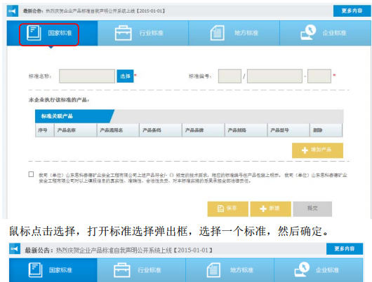 3、标准录入流程 这里列举两个标准录入,一个为选择标准(国家标准为例),一个为输入标 准(企业标准为例)。